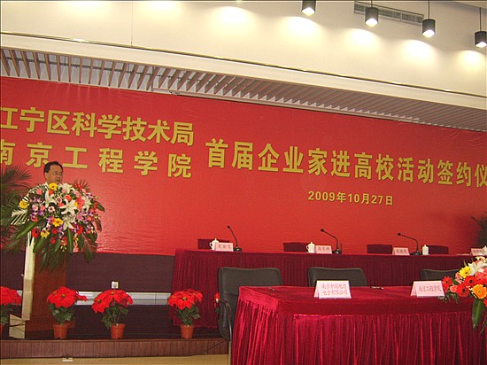 2009年10月27日,汪洋總經(jīng)理參加了由南京市江寧區(qū)科技局與南京工程學(xué)院聯(lián)合舉辦的“首屆企業(yè)家進高校活動”,并與南京工程學(xué)院簽訂了校企合作協(xié)議。