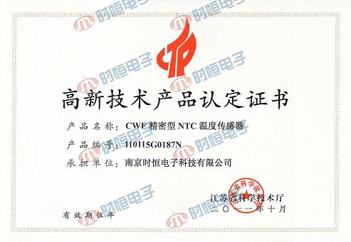 CWF溫度傳感器系列榮獲江蘇省高新技術(shù)產(chǎn)品