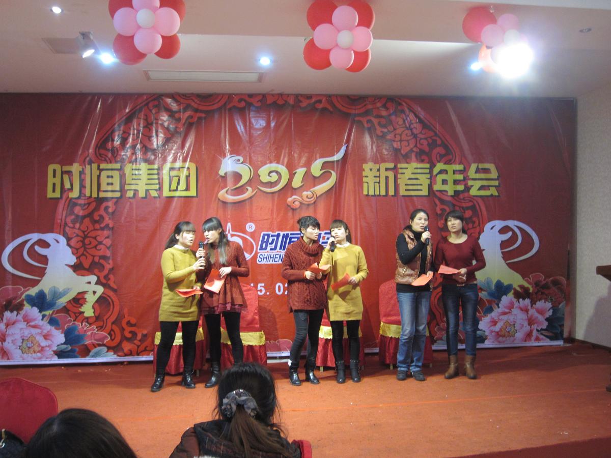 2015年2月16日下午1:30,公司全體員工在湖熟街道秦湖大酒店舉行了年會(huì)。年會(huì)上,汪總代表公司向全體員工匯報(bào)了公司2014年度的生產(chǎn)經(jīng)營(yíng)情況,并將2015年的計(jì)劃也向大家進(jìn)行了說(shuō)明。2015年將是時(shí)恒公司轉(zhuǎn)型升級(jí)的關(guān)鍵一年,時(shí)恒人將在研發(fā)、生產(chǎn)、品質(zhì)、設(shè)備投入等多方面實(shí)現(xiàn)更大突破,夯實(shí)和提升時(shí)恒的綜合實(shí)力,把時(shí)恒公司的集研發(fā)、生產(chǎn)、銷(xiāo)售為一體的優(yōu)勢(shì)進(jìn)一步發(fā)揮出來(lái),為行業(yè)發(fā)展、為技術(shù)進(jìn)步做出貢獻(xiàn),為時(shí)恒員工提供更好的福利待遇!年會(huì)上還表彰了2014年度各類(lèi)先進(jìn)集體和個(gè)人,進(jìn)行了歡快喜慶的節(jié)目表演,抽獎(jiǎng)環(huán)節(jié)更是讓大家興致勃勃。時(shí)恒的明天一定會(huì)更加美好!